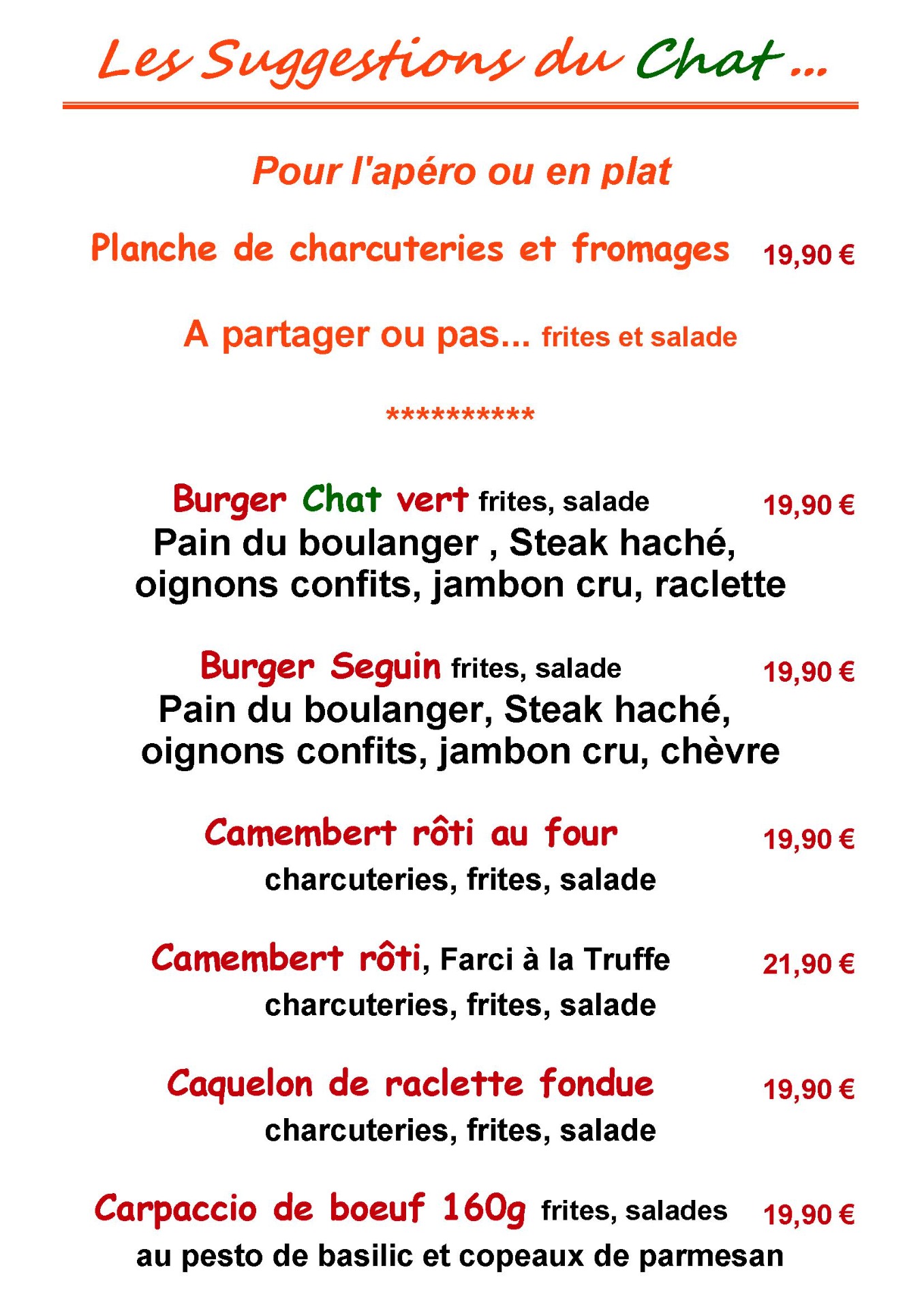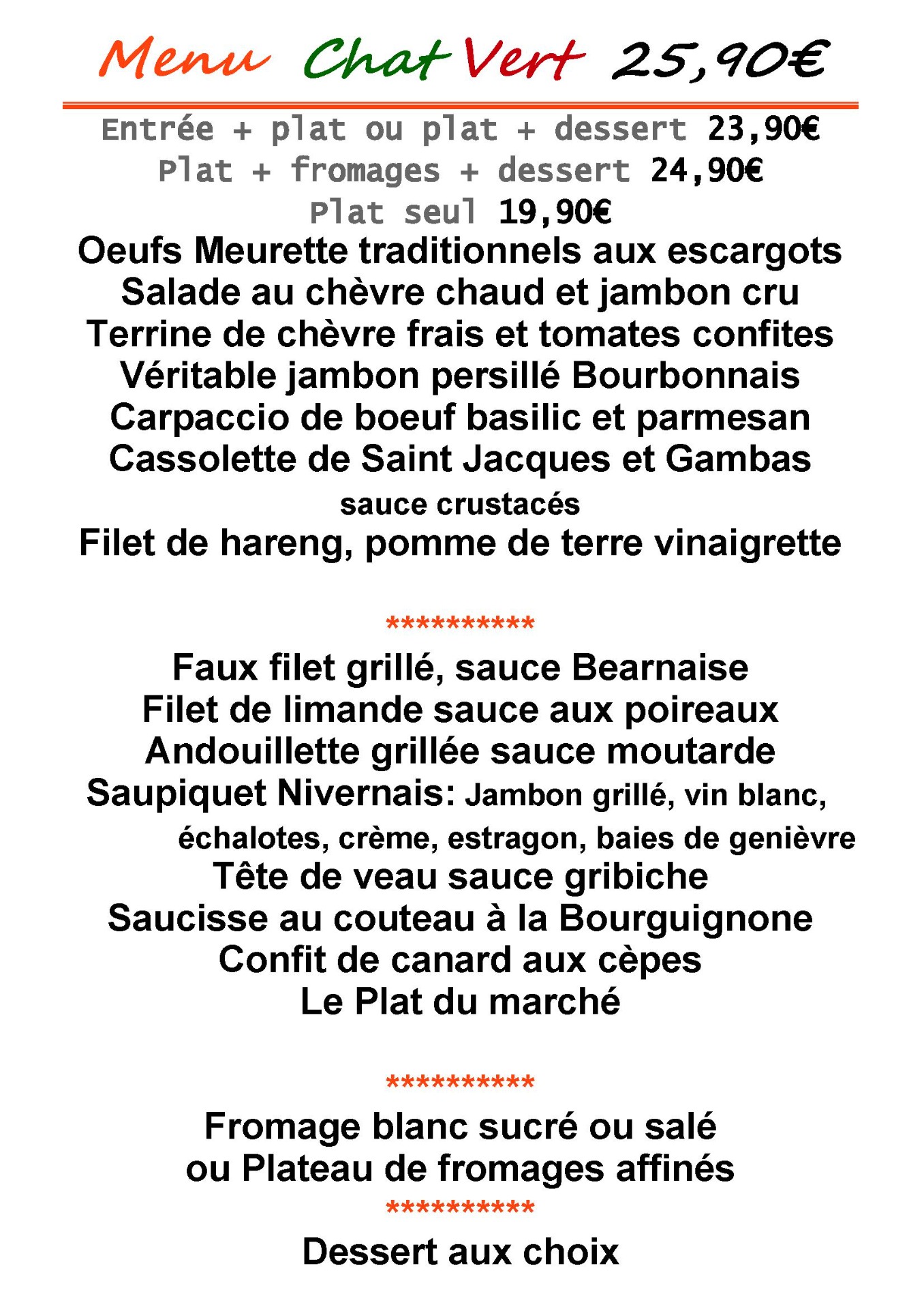 Nos Menus du moment